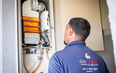 Verificação periódica do funcionamento de aquecedores a gás, com limpeza, ajustes e correções para prevenir falhas e riscos de intoxicação.