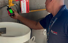 Procedimento técnico que verifica a existência de vazamentos na rede de gás, por meio de equipamentos de precisão e conforme normas vigentes.